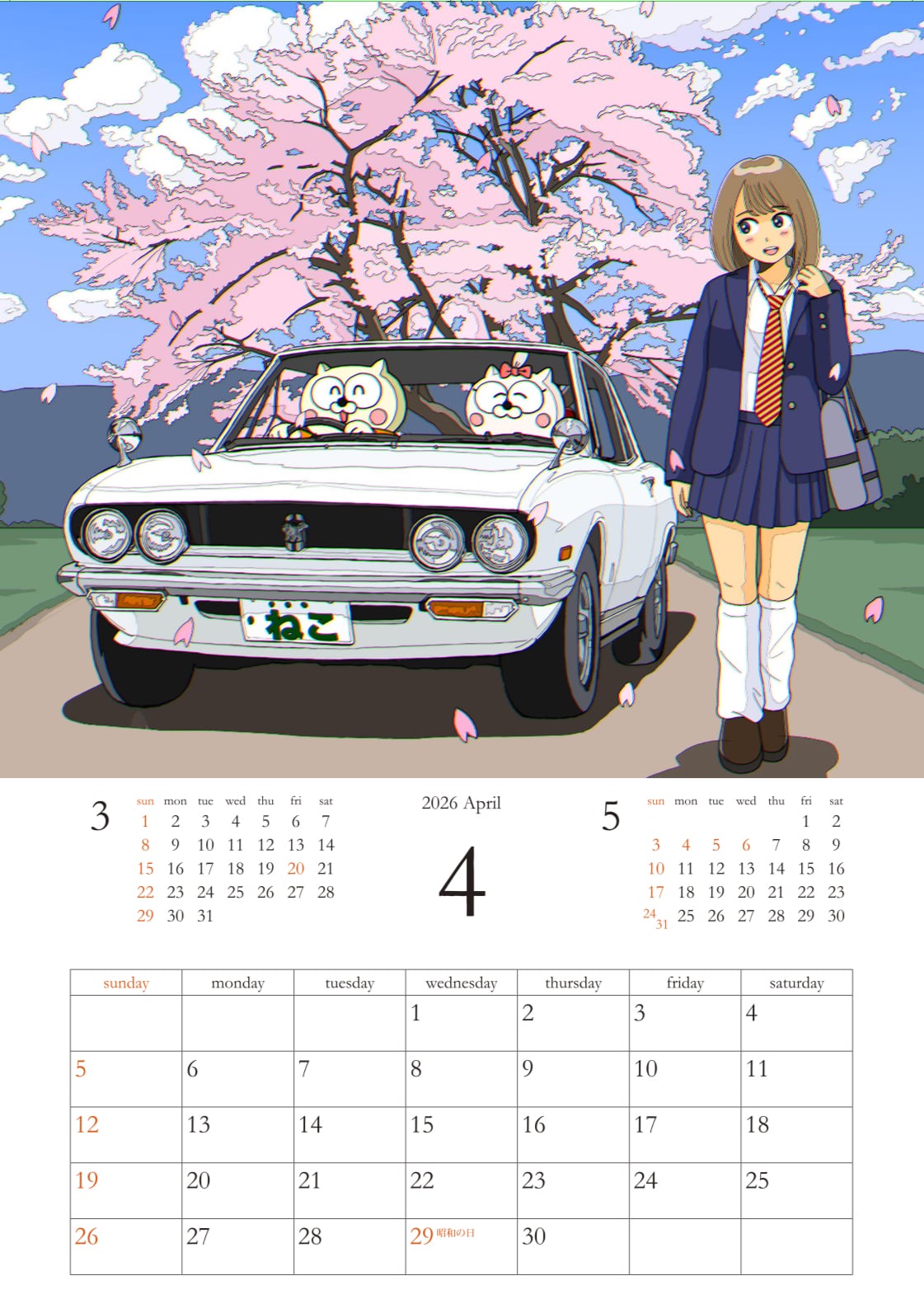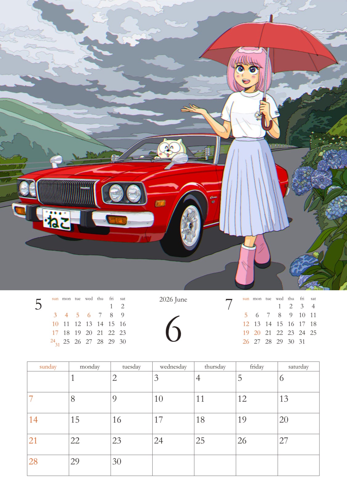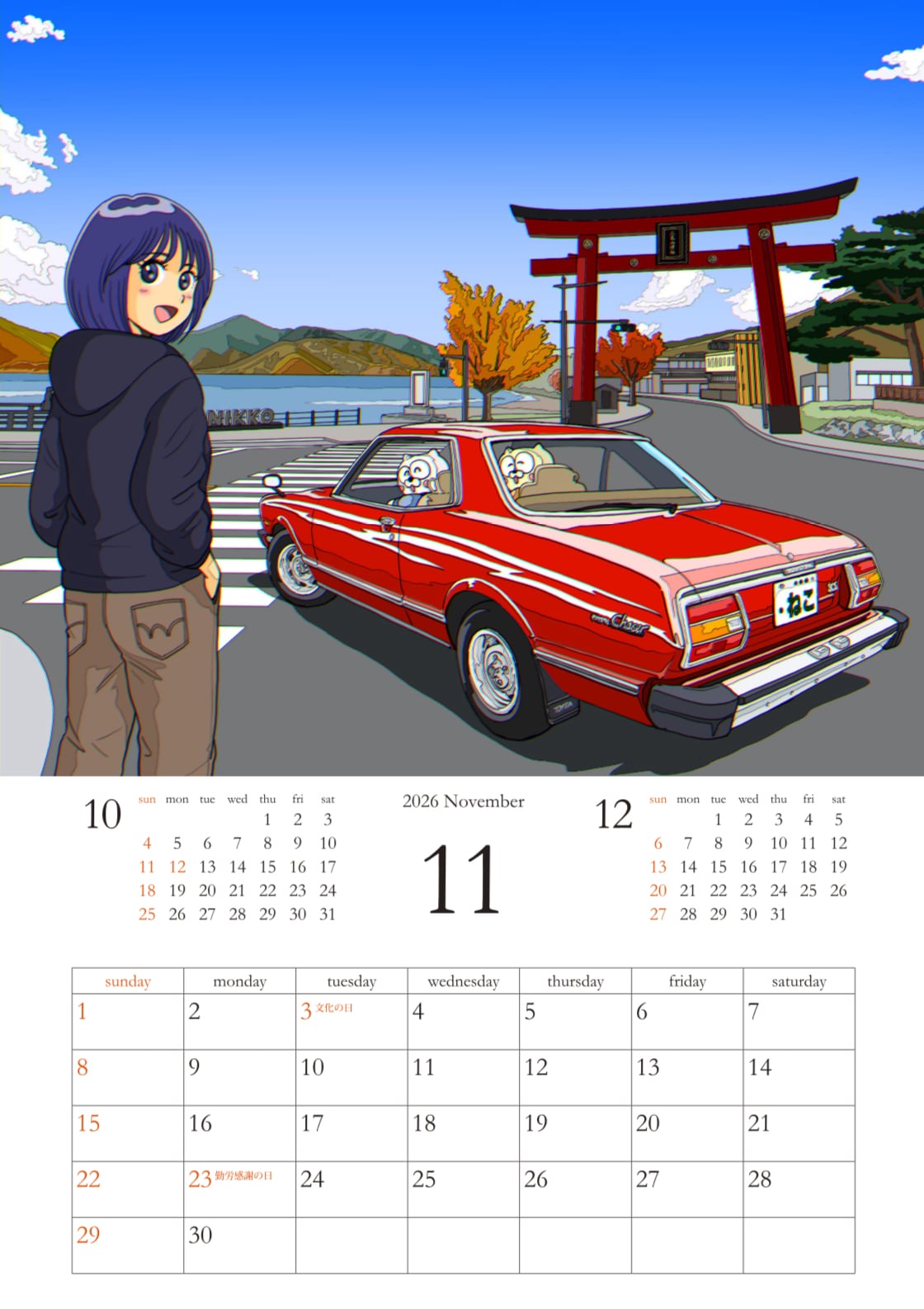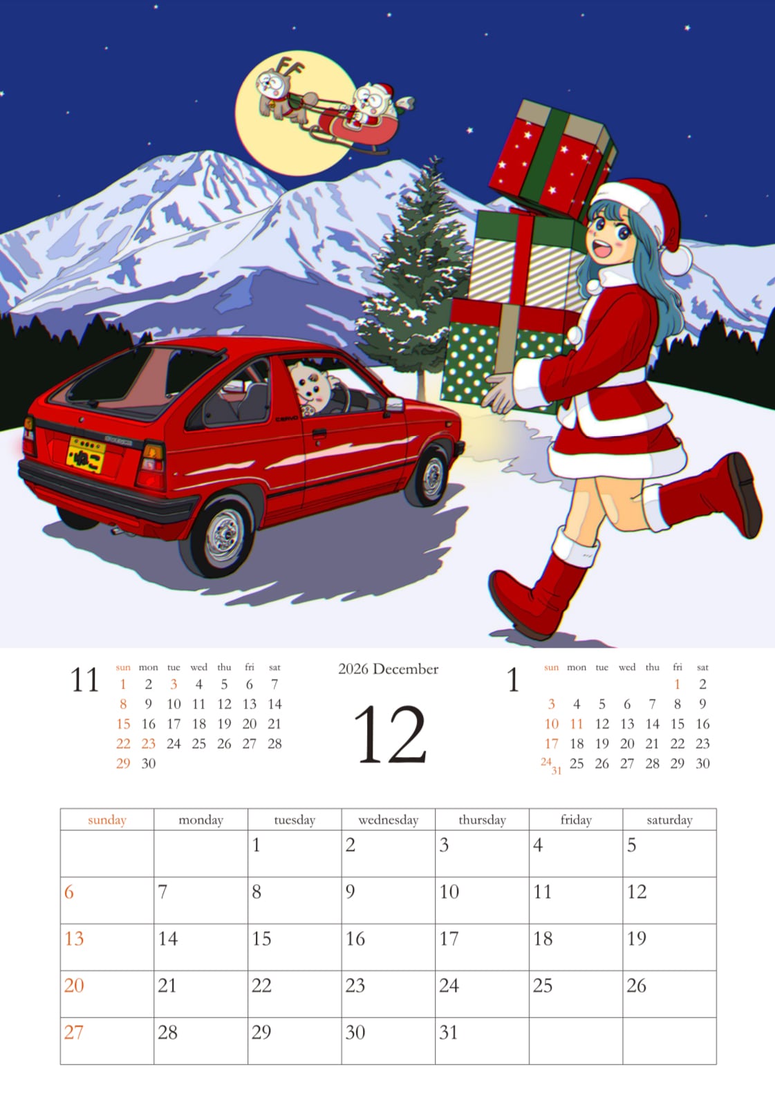 月ごとに魅力的な70年代から80年代の懐かしいクルマが登場して毎月めくるのが楽しみになるカレンダーです!