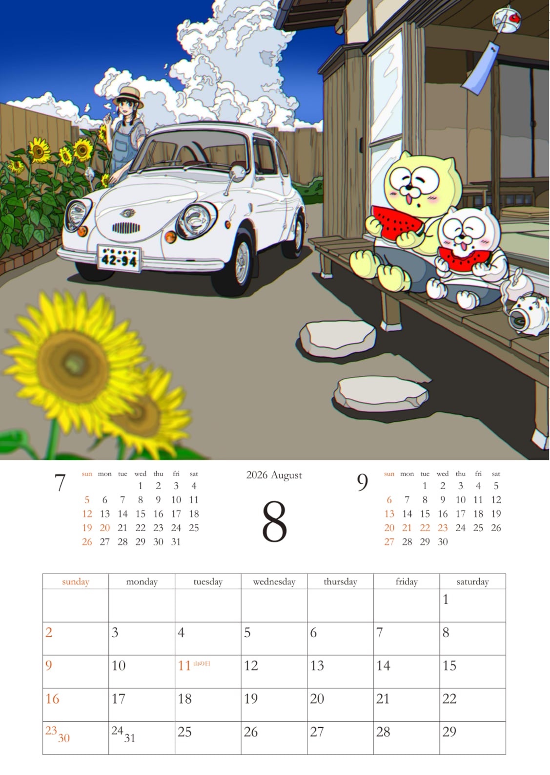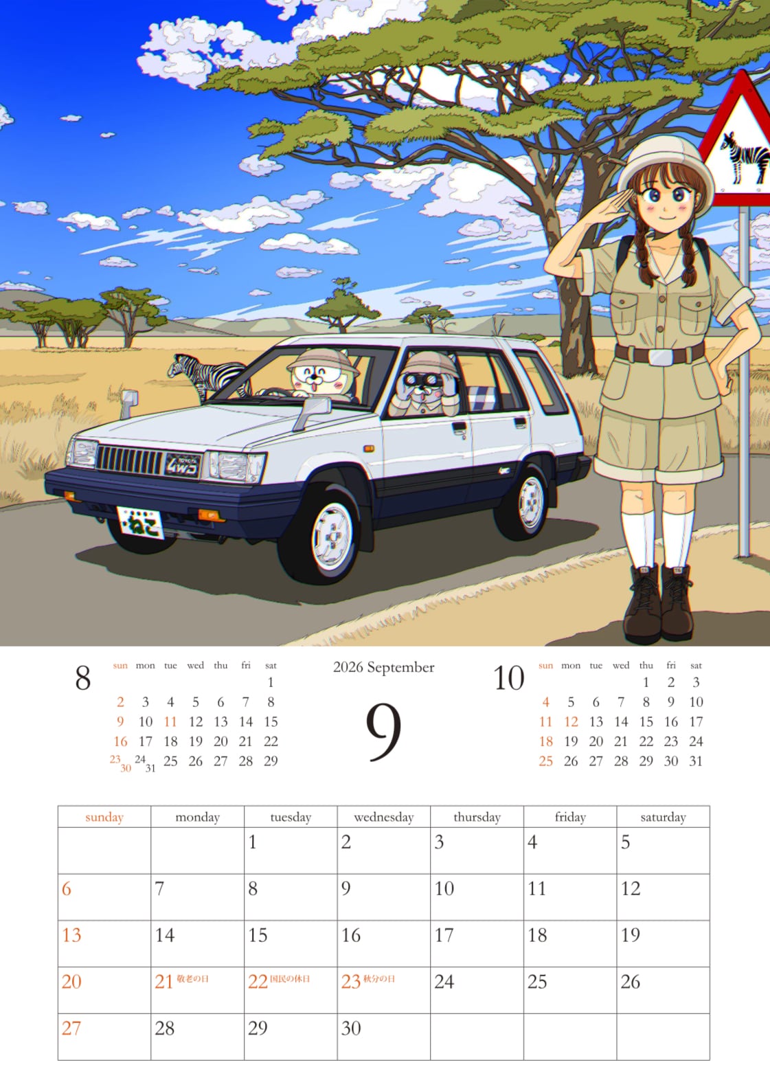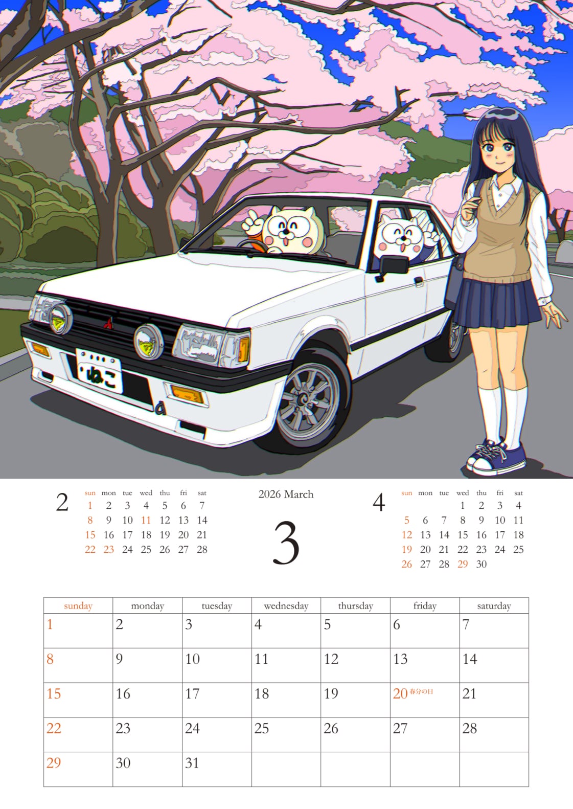 月ごとに魅力的な70年代から80年代の懐かしいクルマが登場して毎月めくるのが楽しみになるカレンダーです!