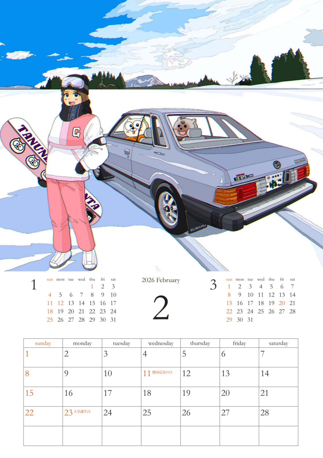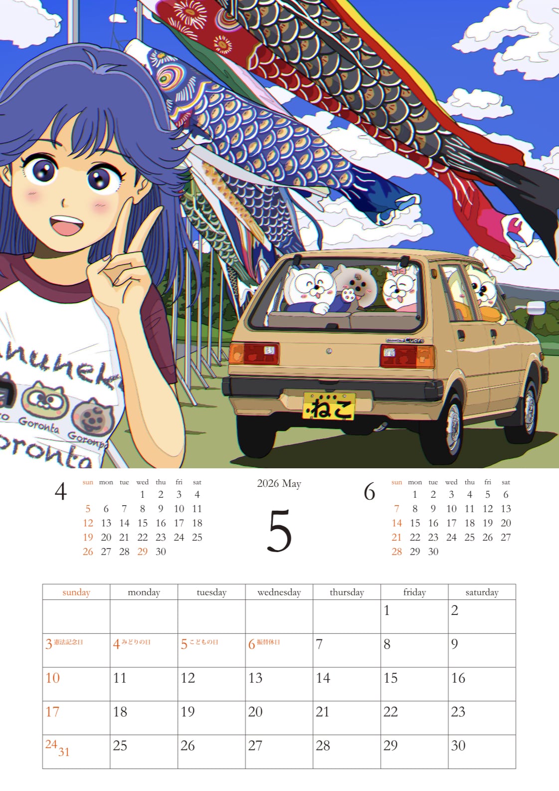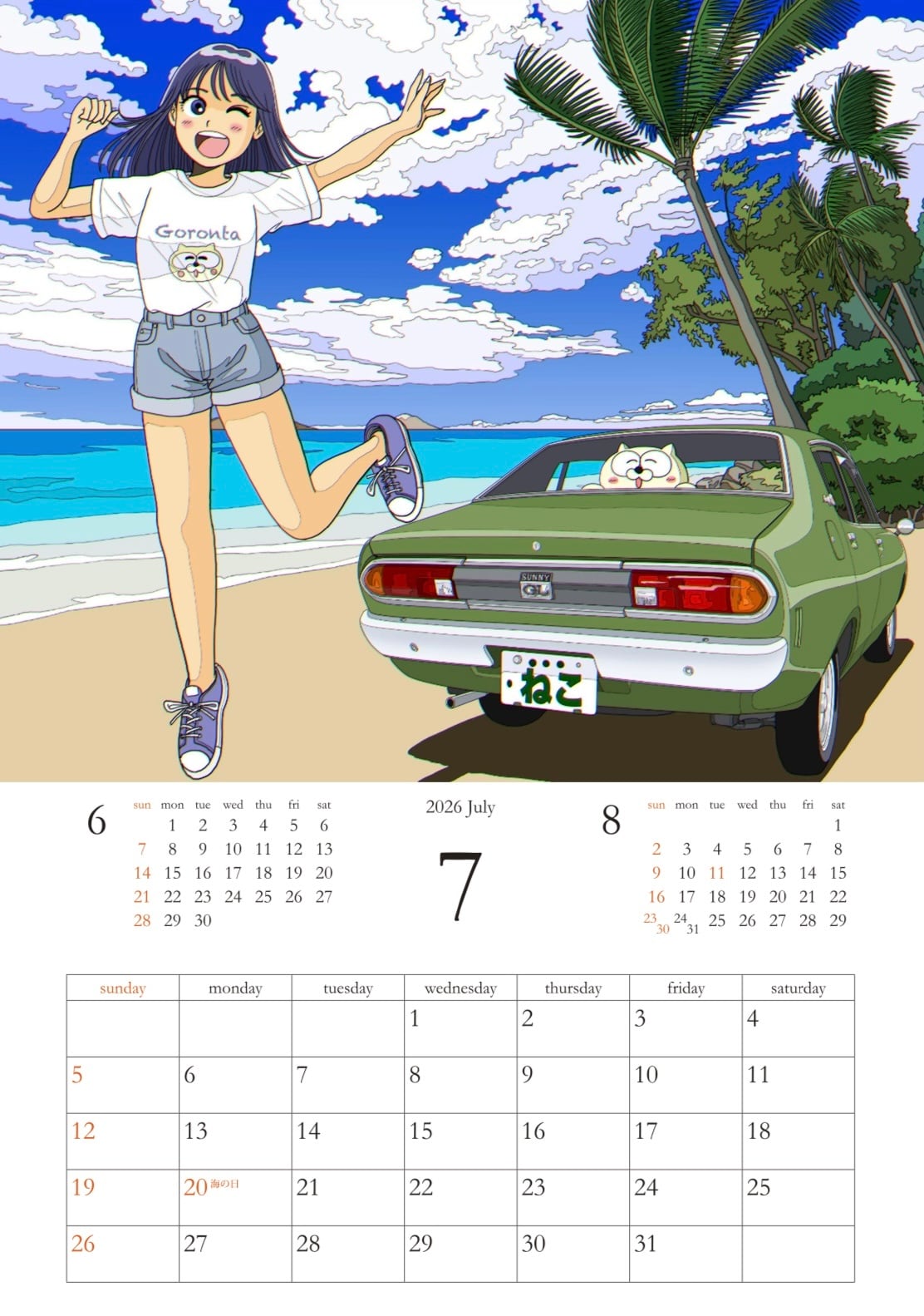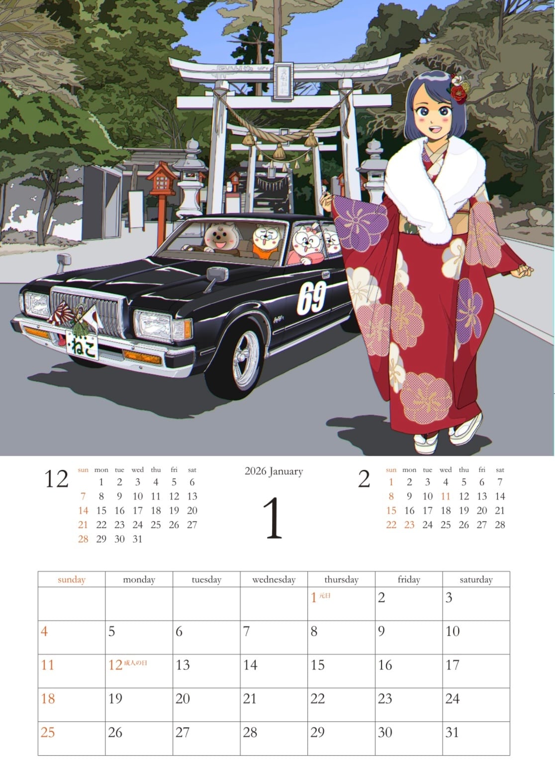 月ごとに魅力的な70年代から80年代の懐かしいクルマが登場して毎月めくるのが楽しみになるカレンダーです!